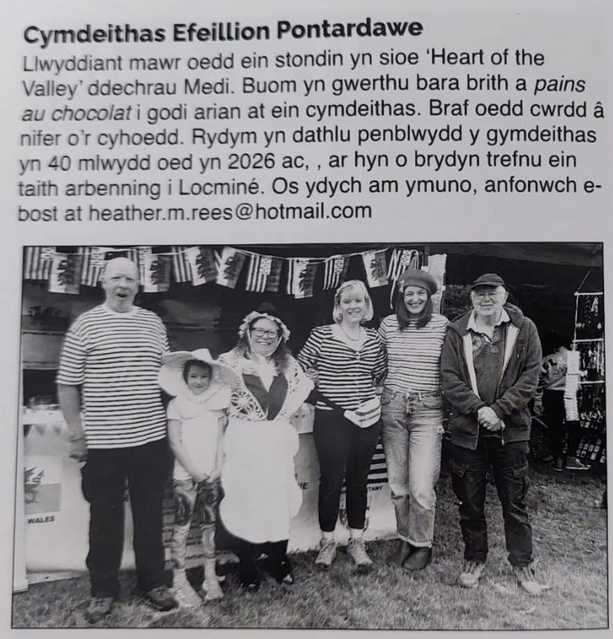 The Month of May saw the return leg of our twinning exchange, as Locminé Brittany visitors arrived in Pontardawe. Our guests were treated to a warm Welsh welcome, complete with guided tours of the Swansea Valley,